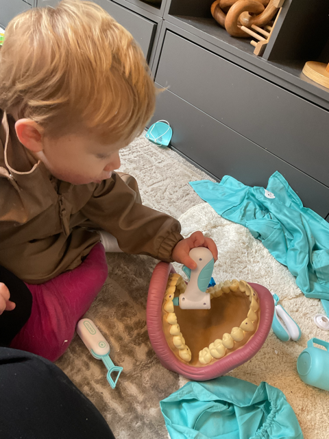 - Try brushing a favourite toy’s “teeth” first, then your child’s.