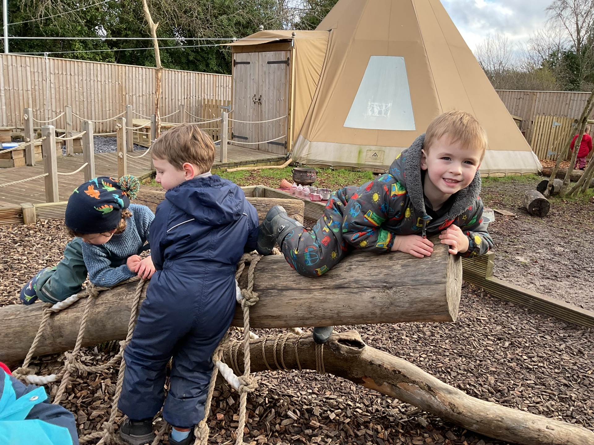 Nestled within our outdoor space, the tipi is the heart of our Forest School provision — a calm, welcoming base room where children and families can gather, connect and learn together. It provides a safe and nurturing environment for small group Forest School sessions, as well as relaxed parent stay-and-play experiences that encourage shared discovery and confidence building.